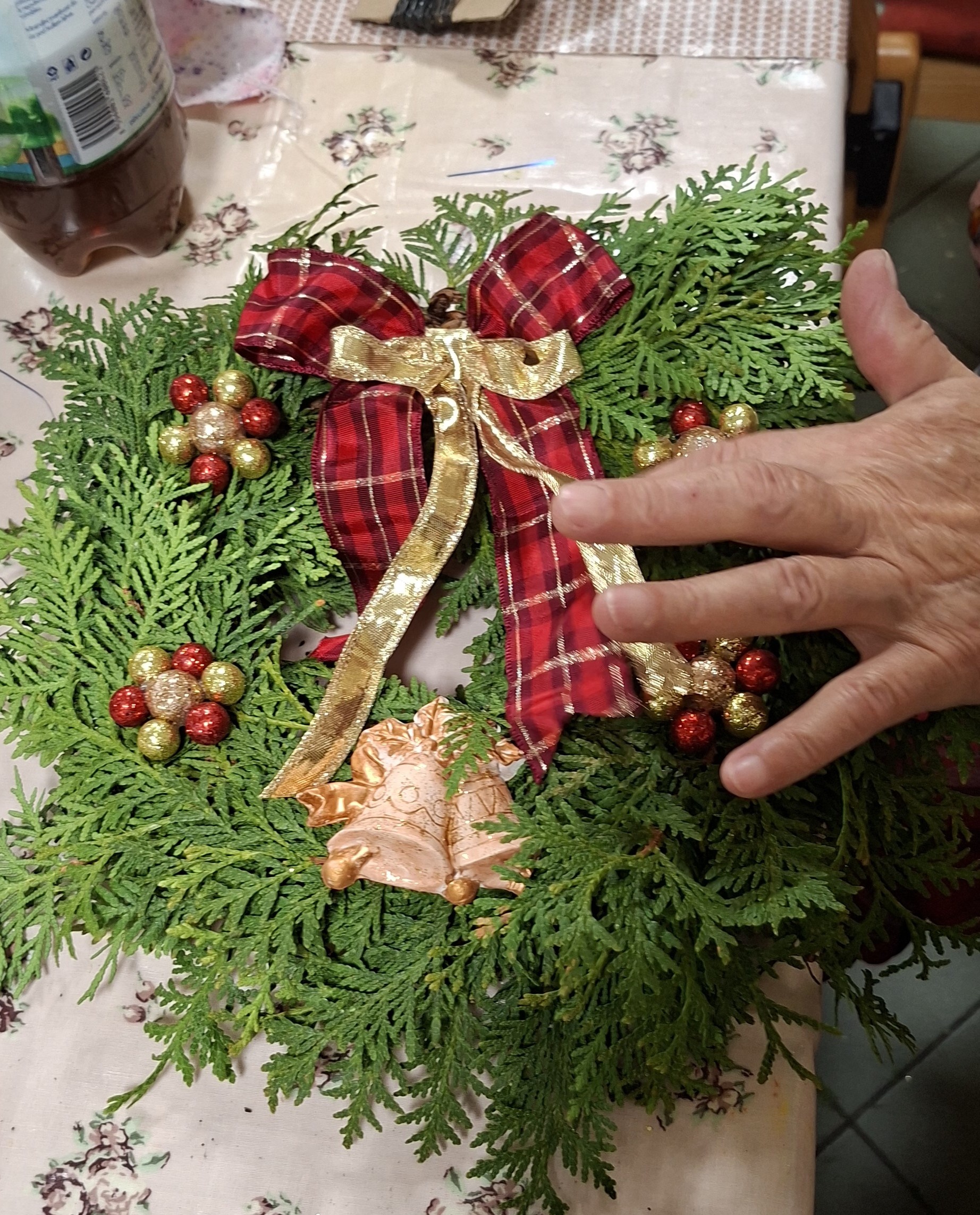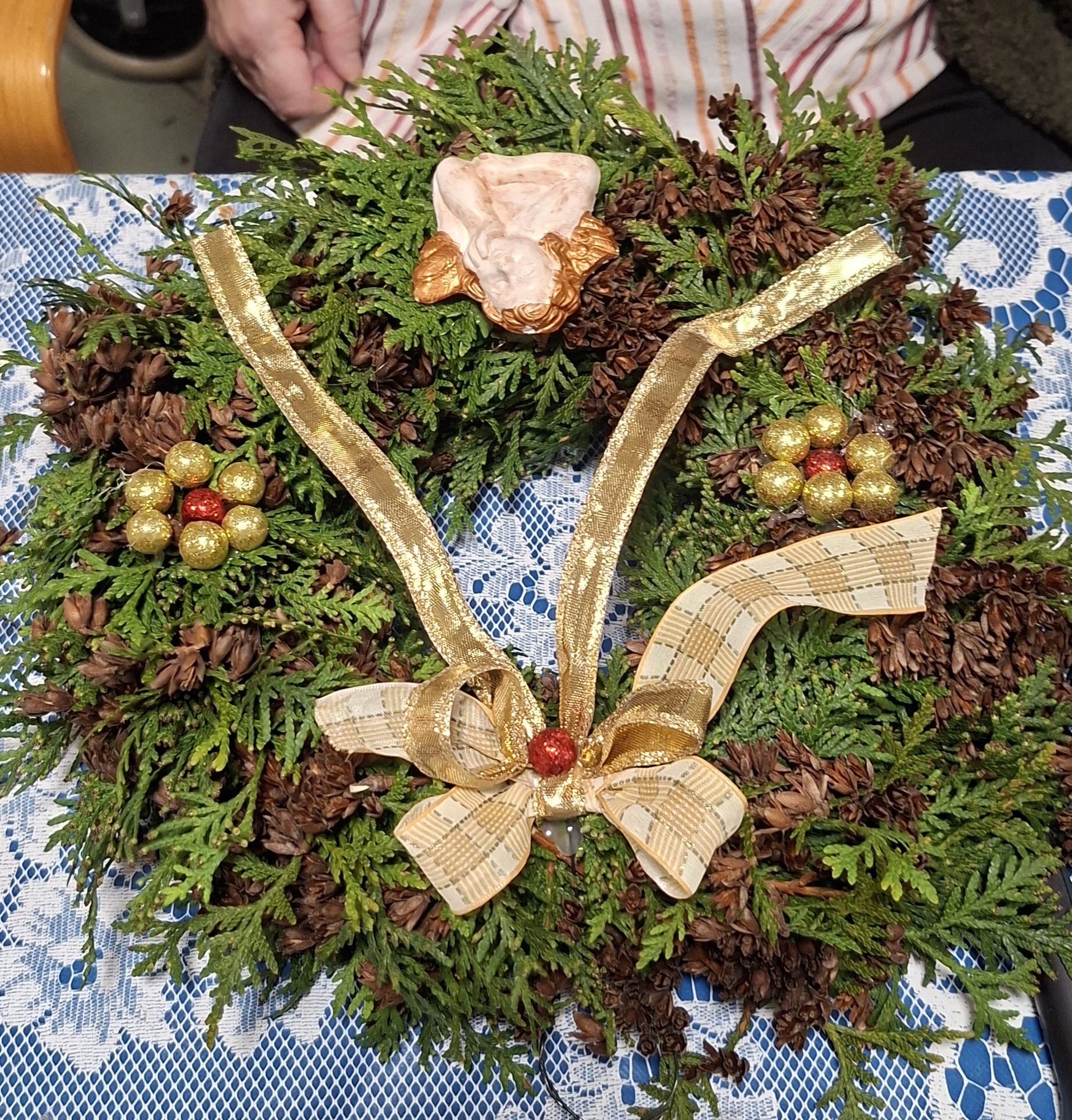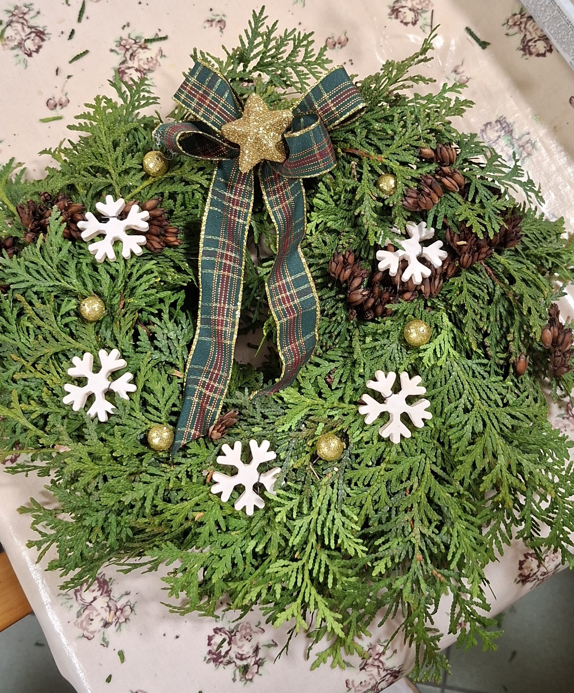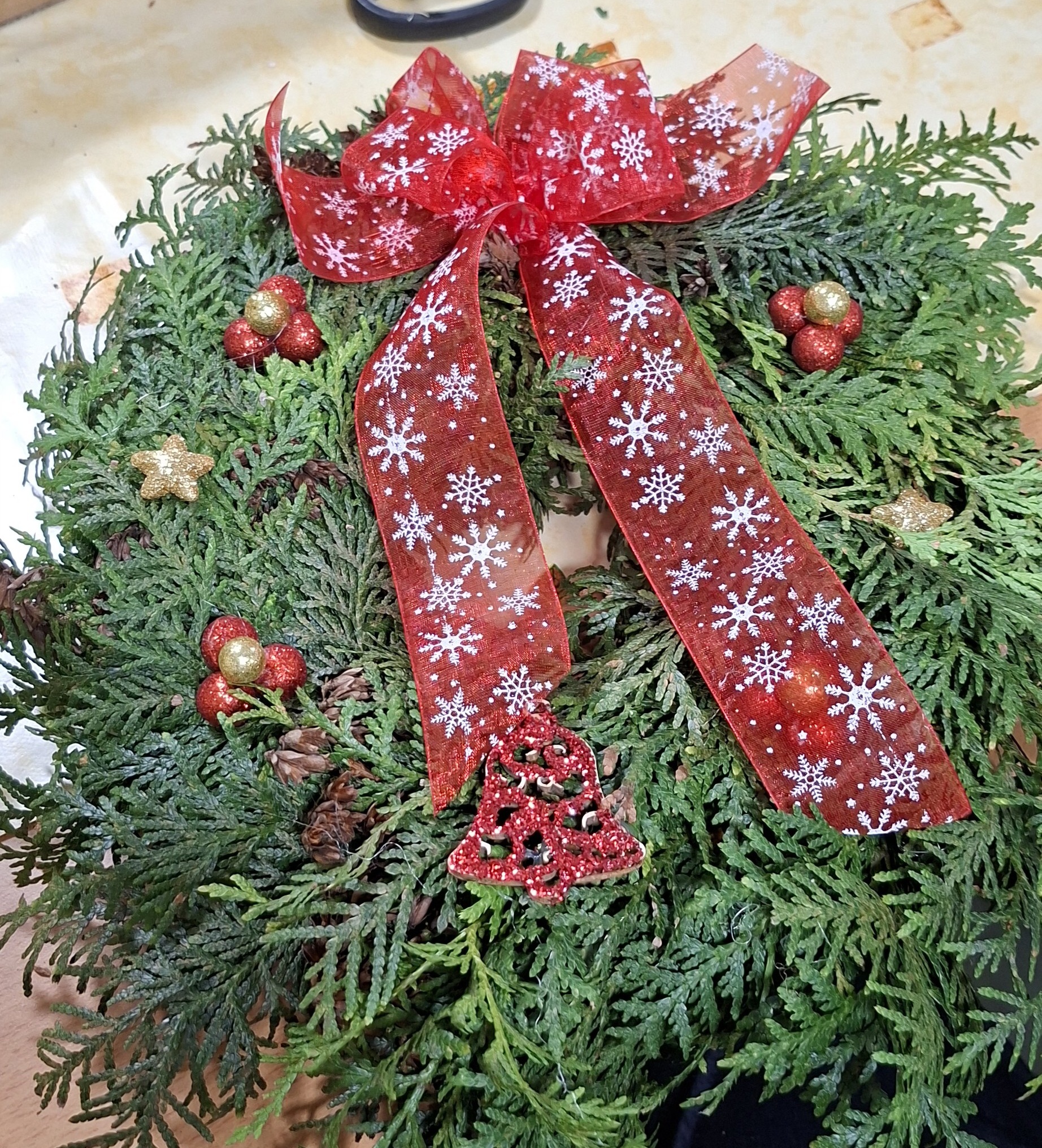 Je konec listopadu a začíná advent. Ani letos jsme s uživateli nezapomněli vyrobit adventní věnce, které ozdobí dveře pokojů. Pro velký zájem jsme se museli rozdělit na tři skupiny. Túje z naší zahrady nám poskytly své větve a pak stačily jen šikovné ruce a věneček byl na světě.