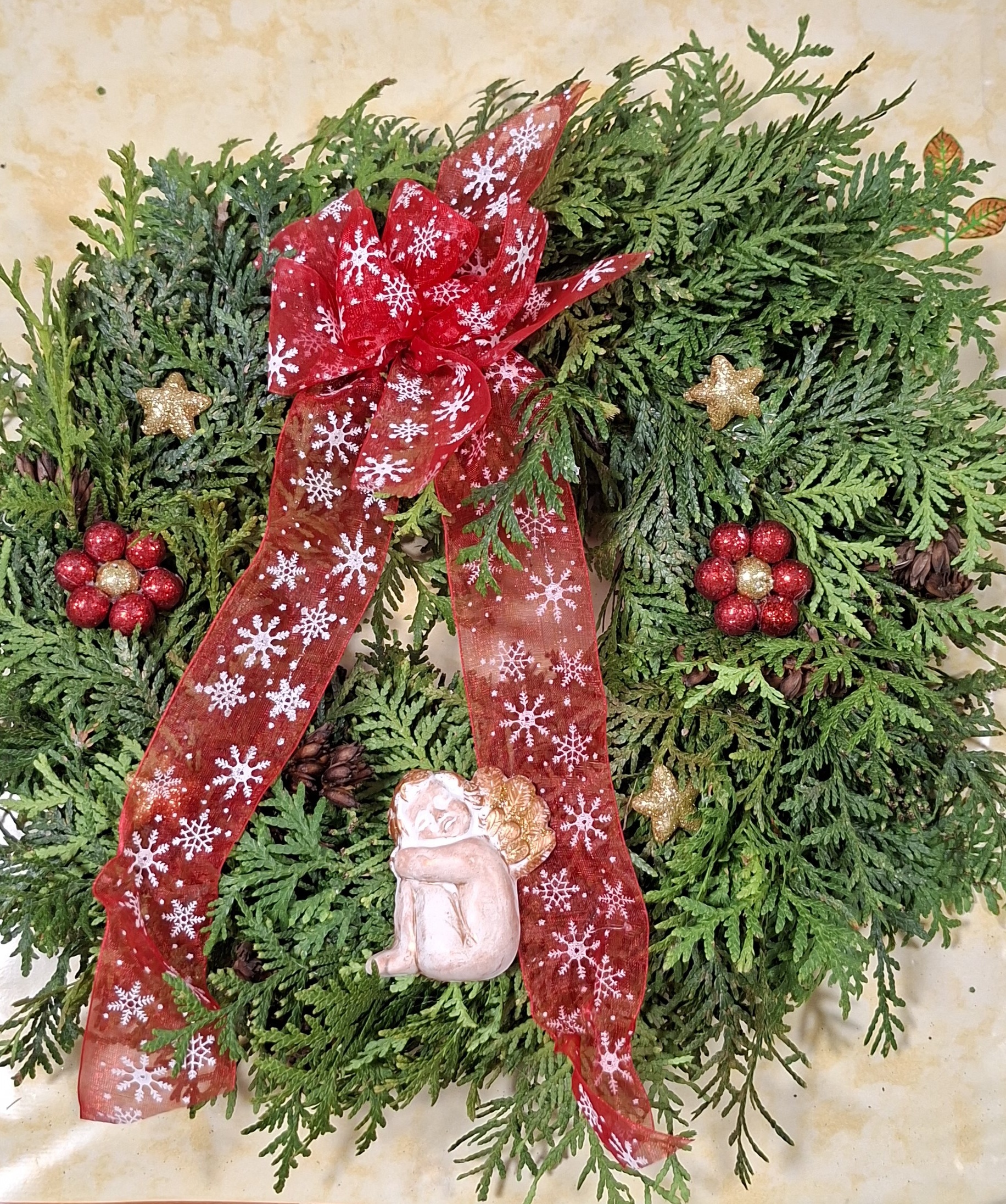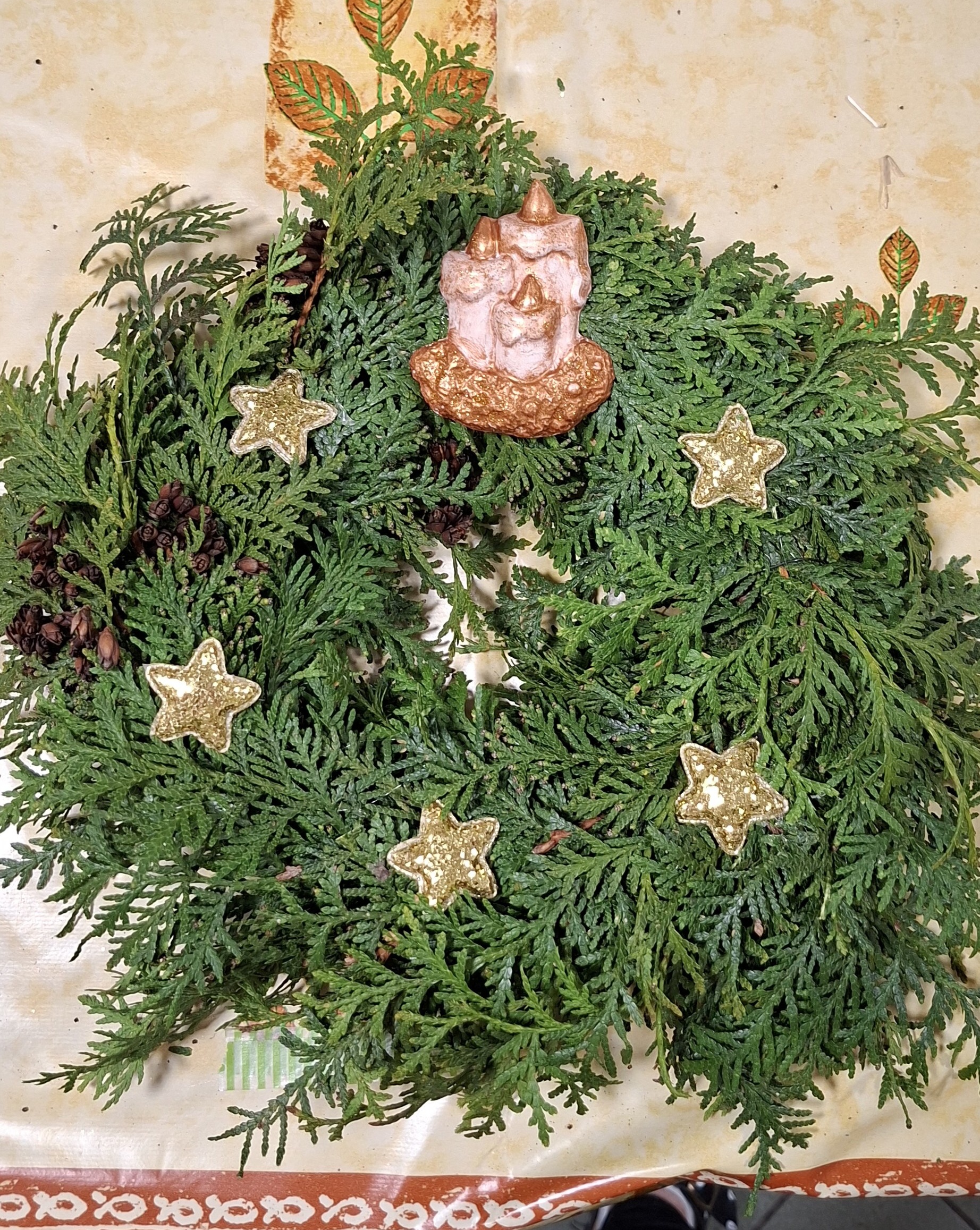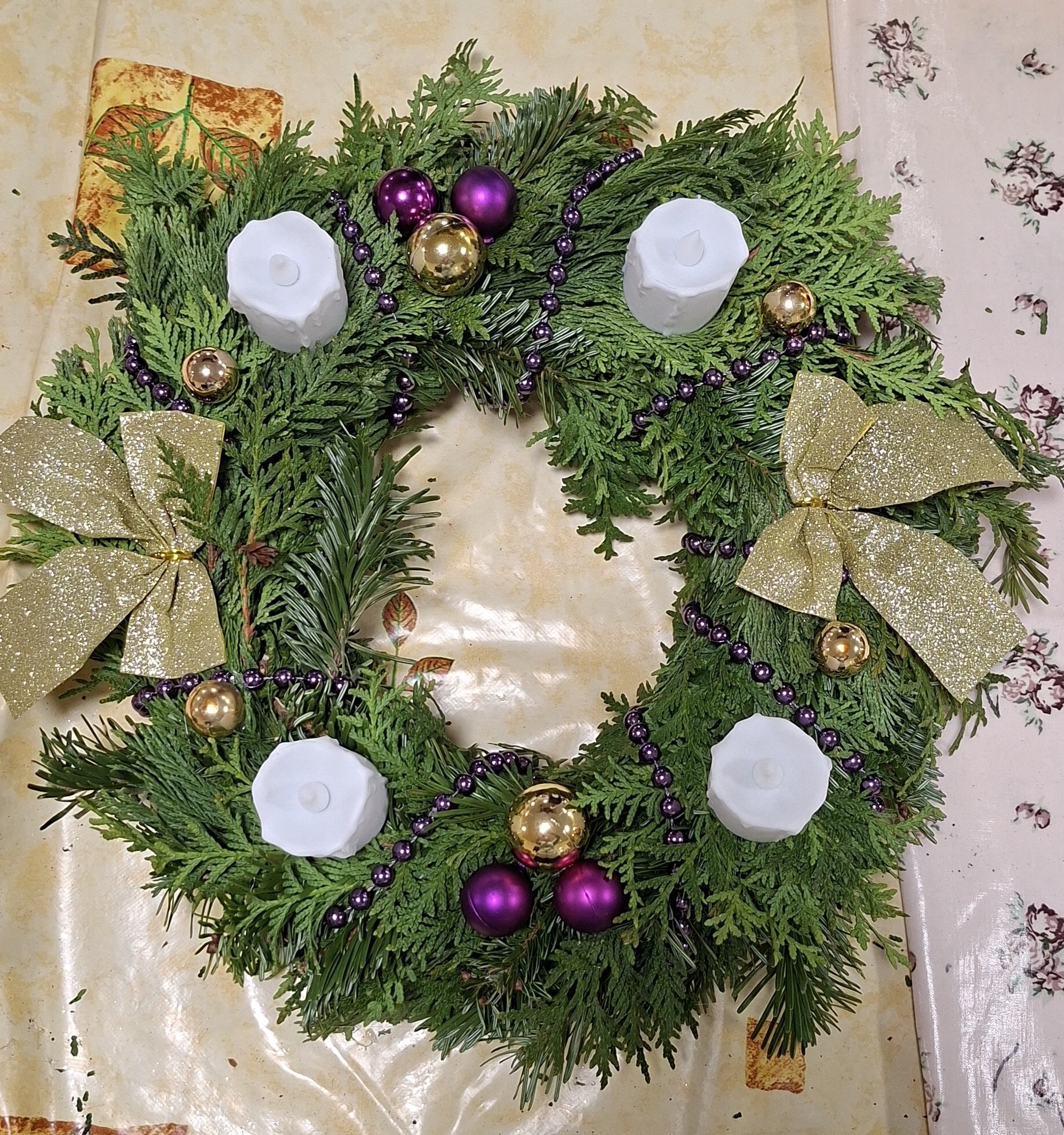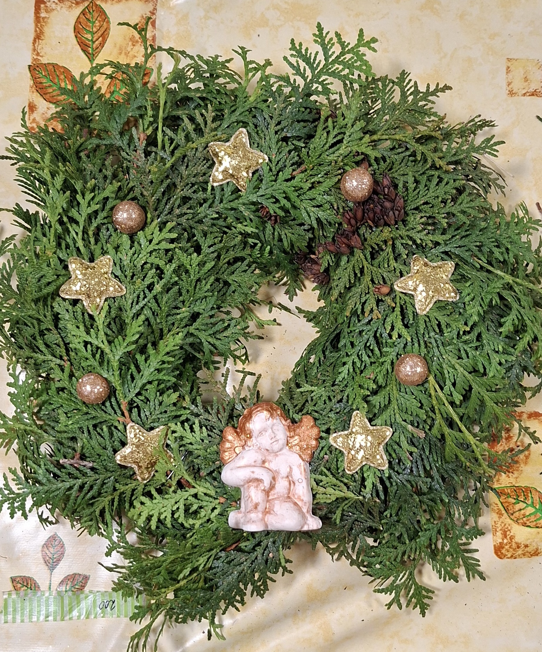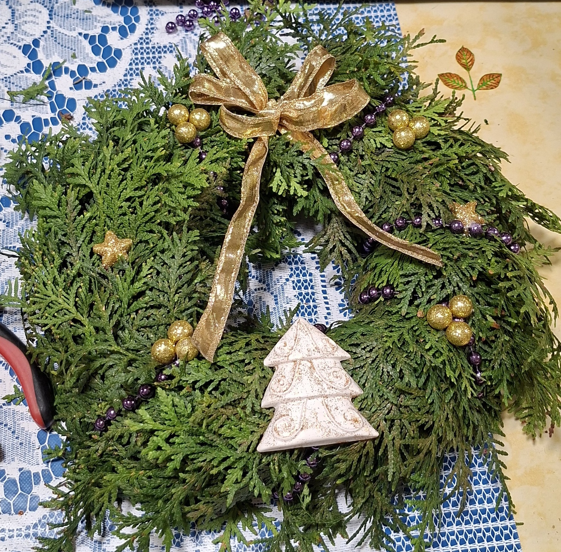 Je konec listopadu a začíná advent. Ani letos jsme s uživateli nezapomněli vyrobit adventní věnce, které ozdobí dveře pokojů. Pro velký zájem jsme se museli rozdělit na tři skupiny. Túje z naší zahrady nám poskytly své větve a pak stačily jen šikovné ruce a věneček byl na světě.