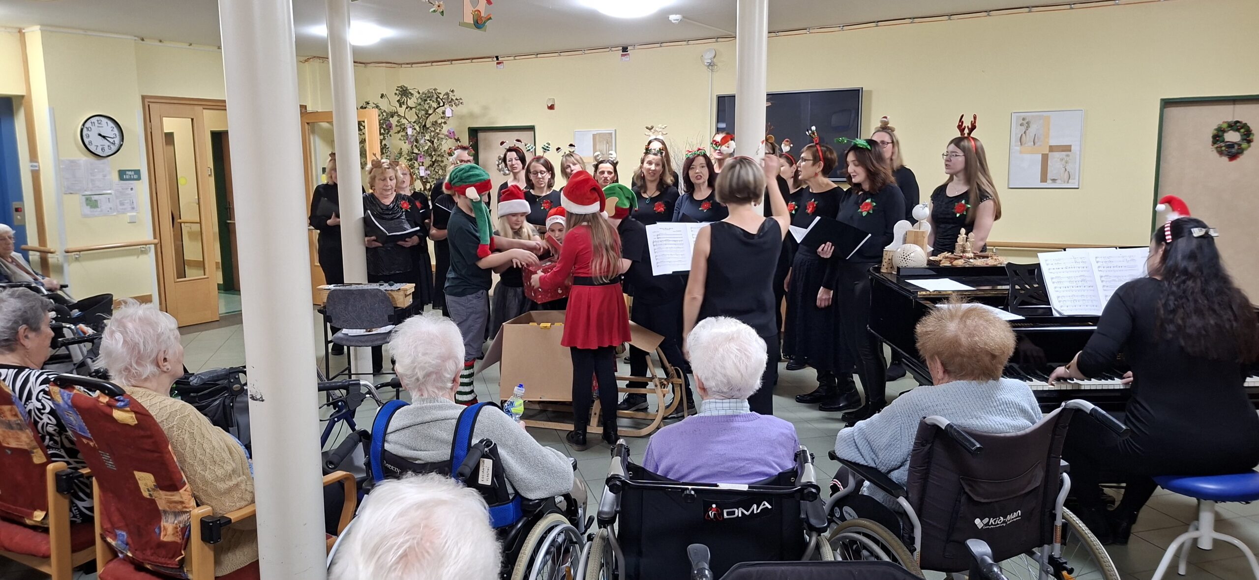 Již řadu let zahajují advent v našem domově dámy z Hostivického pěveckého sboru. Jejich koncert je pro všechny velkým zážitkem. Letos se sbor rozrostl o děti a vnoučata zpěvaček. Všem to krásně zpívalo.