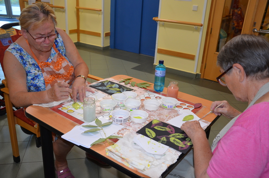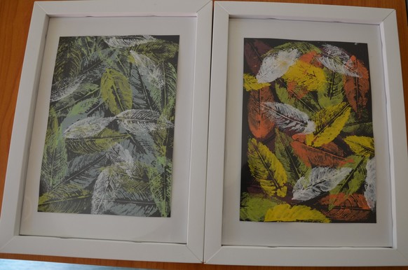 Další technika, kterou jsme si při výtvarném tvoření vyzkoušeli, byl tisk. Stačilo pár listů, akrylové barvy, papír, trocha fantazie a výtvarné dílo bylo na světě.